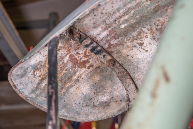 Hier treffe ich zum ersten Mal auf eine Schraube, die sich partout nicht mehr löst. Also muss der Dremel her und die Mutter wird mit der kleinen Diamantscheibe abgetrennt. Die Lenkerkopfmutter (Aussengewinde und innengewinde, längs geschlitzt und von der oberen Lenkerbrücke geklemmt) sitzt bombenfest. Auch der erste Versuch mit Messingblech als Schutz erweist sich erfolglos. Röschu wird ein entsprechendes Werkzeug machen. Weiter geht es dann nach meinen Ferien…