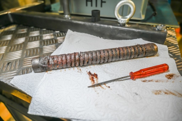 Dazu entferne ich das Gröbste zuerst mit dem Schaubenzieher 😉 Danach geht’s weiter mit einem Haushaltspapier und am Schluss noch in die Reinigungsflüssigkeit mit dem Scotchbrite.