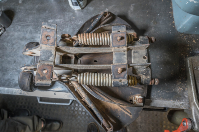 Also runter mit dem Teil und Zerlegen. Dann können die Teile gereinigt und aufgearbeitet werden. Die Satteldecke ist aus Gummi und muss ersetzt werden, die Risse lassen sich nicht mehr reparieren.