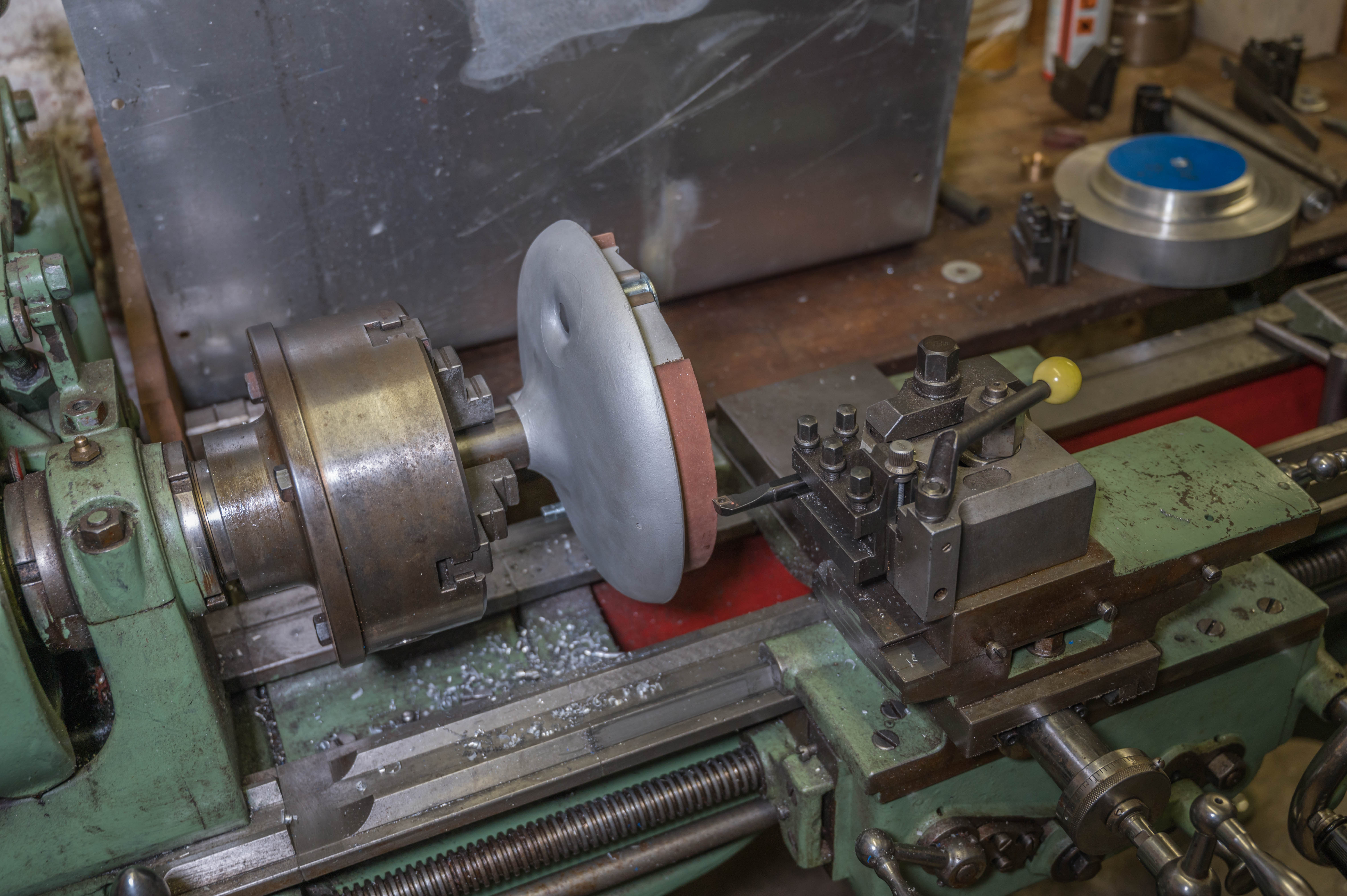Röschu wird mir heute die Bremsbacken auf das richtige Mass überdrehen. Die Teile sind vorbereitet und Röschu hat einen Dorn als Aufnahme für den Drehbank gebaut.