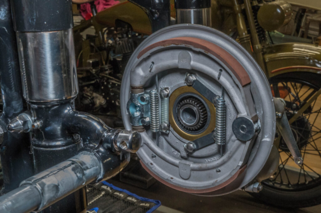 Bei der anschliessenden Montage der aufbereiteten Backen in der Hinterradbremse bekomme ich Hilfe von Markus. Röschu überprüft, ob alles korrekt montiert worden ist. Ich bin dankbar für die wachsamen Augen des Meisters!