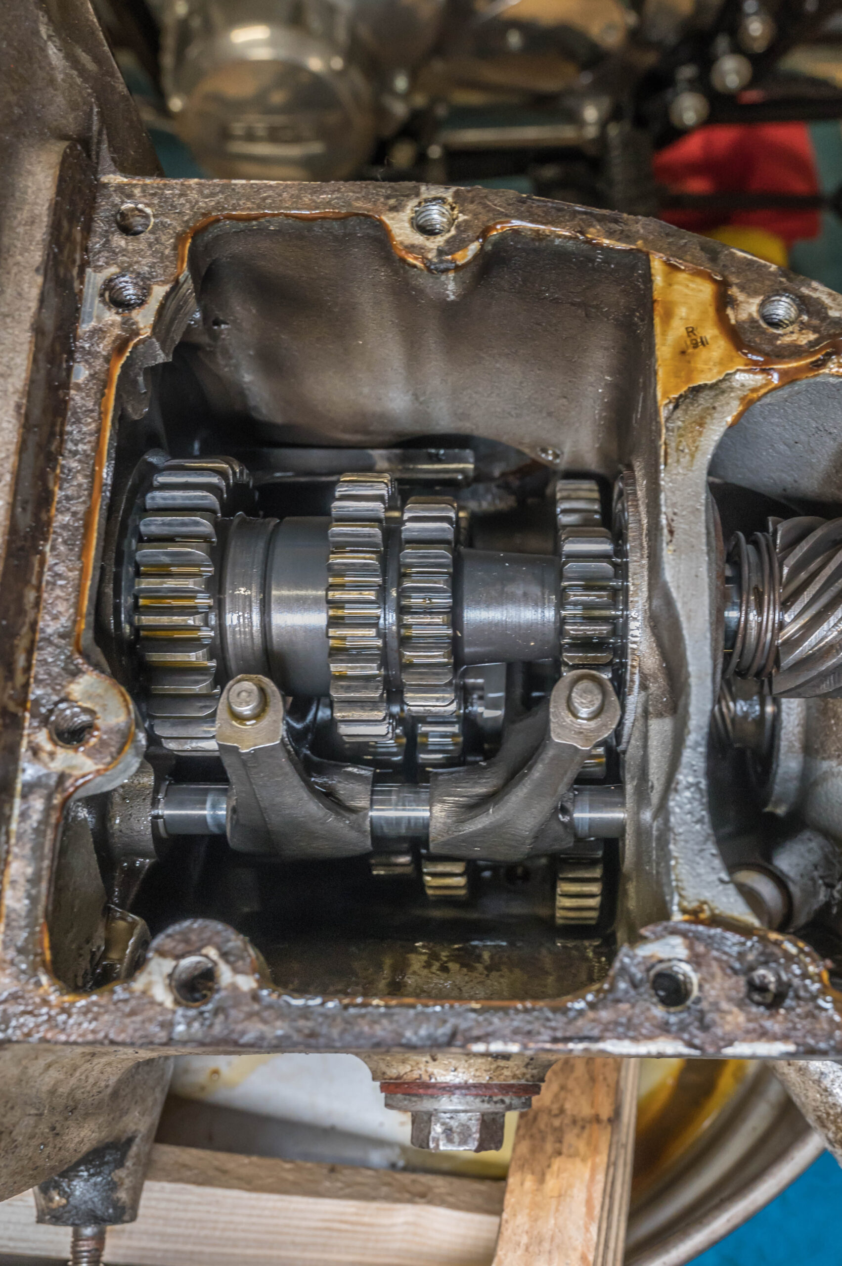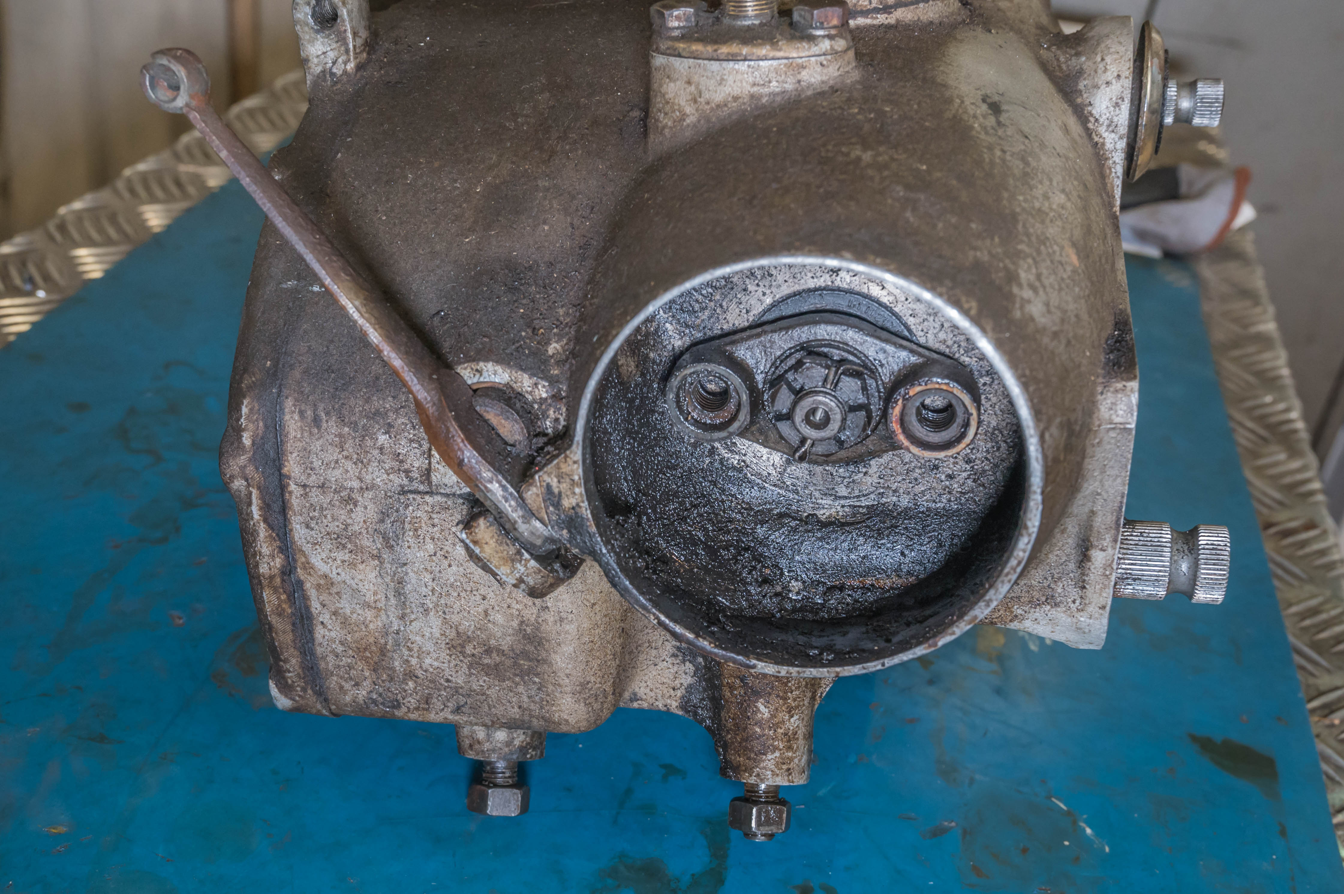 Erster Schritt bei der Revision des Getriebes. Erst einmal alles (dokumentiert) zerlegen und anschliessend reinigen. Das Gehäuse wird mit Glasperlen am Schluss wieder in alter Frische erstrahlen. Aber das kommt noch…