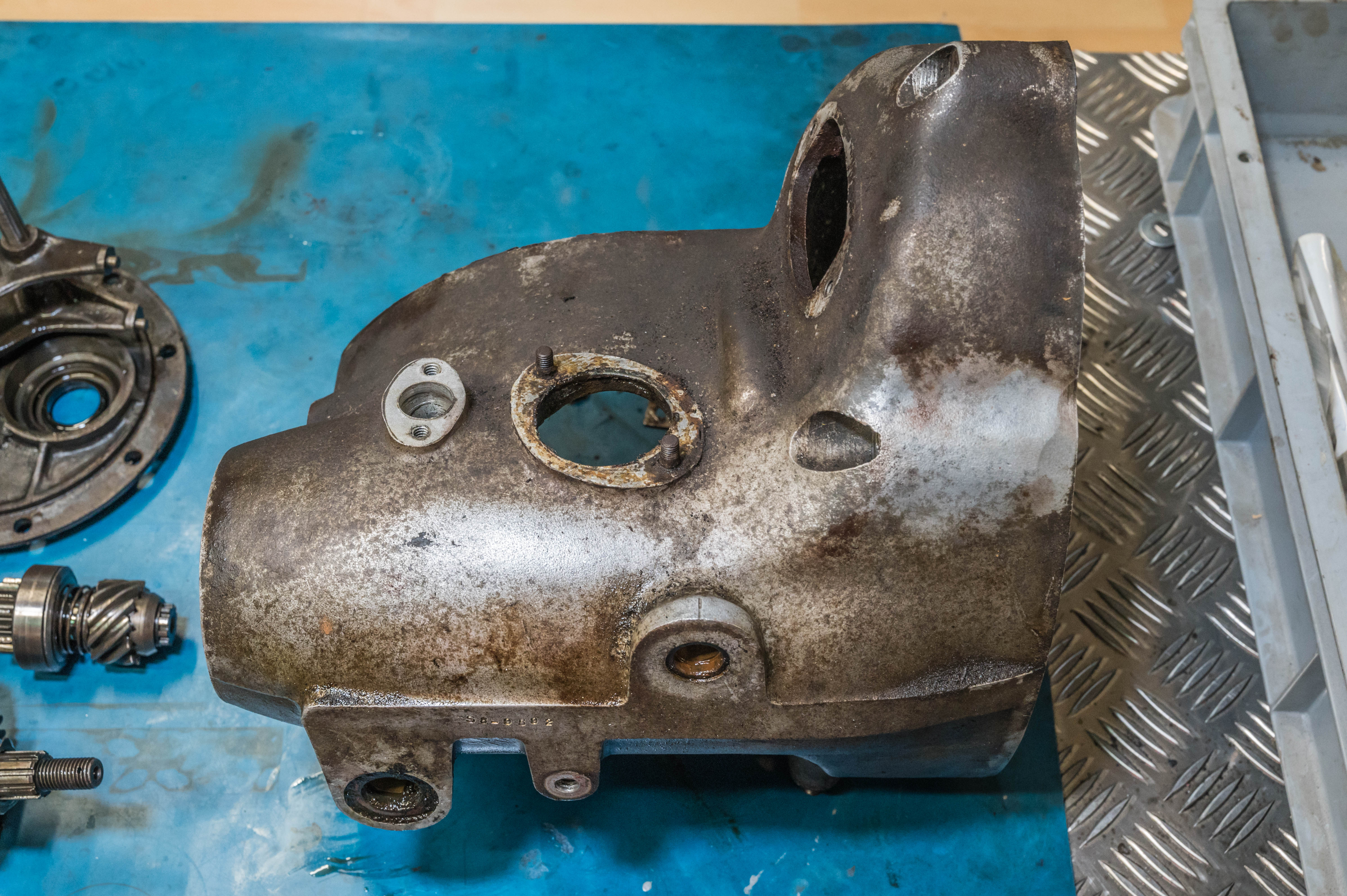 Das Getriebe wird zerlegt. Der erste Blick lässt hoffen: sieht alles recht gut aus, das Öl resp. der Ölschlick riecht nicht, die Zahnräder sind alle sehr gut in Schuss. Nur die Lager sind etwas „heruntergekommen“.