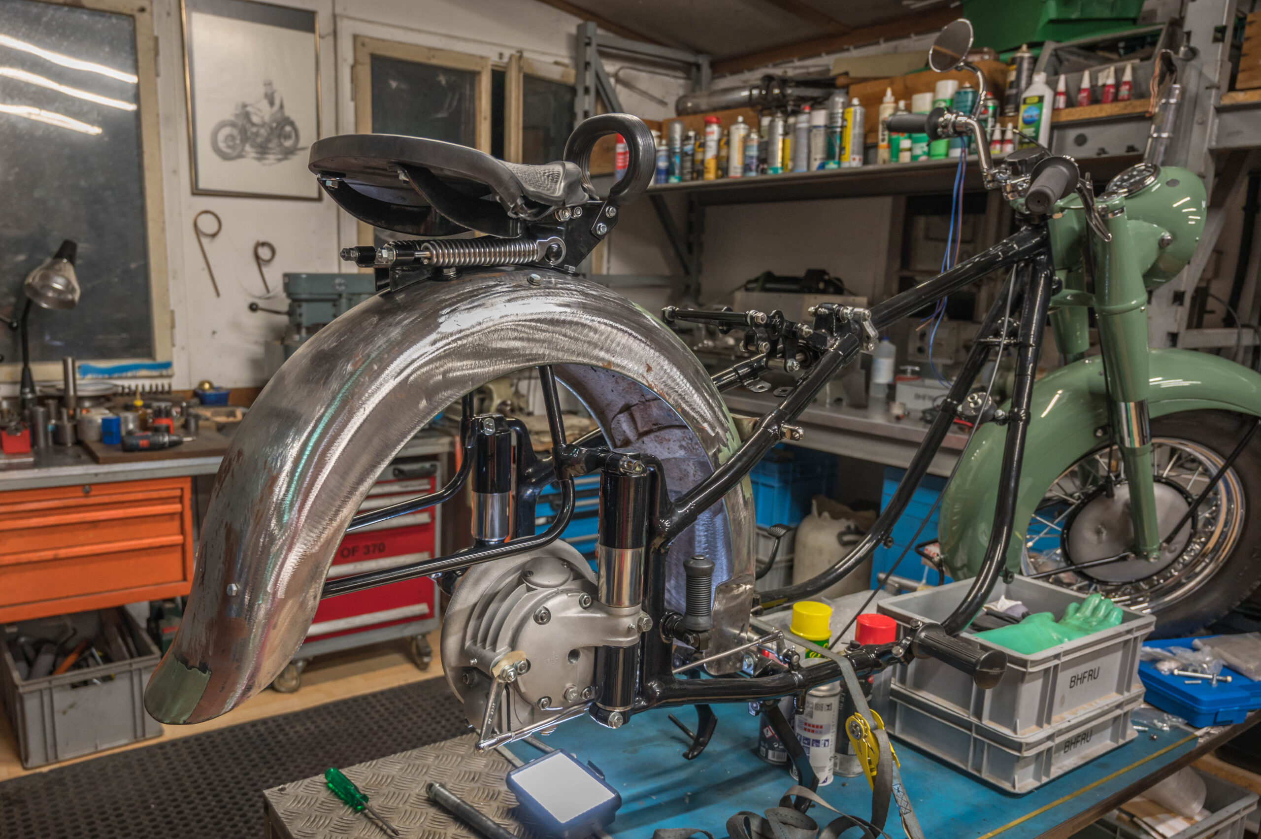 Aber bis am Ende des Abends ist das Blech montiert, der Sozius montiert und der Nummernschildhalter an Ort und Stelle. Noch nicht alles perfekt und noch nicht alles definitiv, aber daran arbeite ich das nächste Mal.