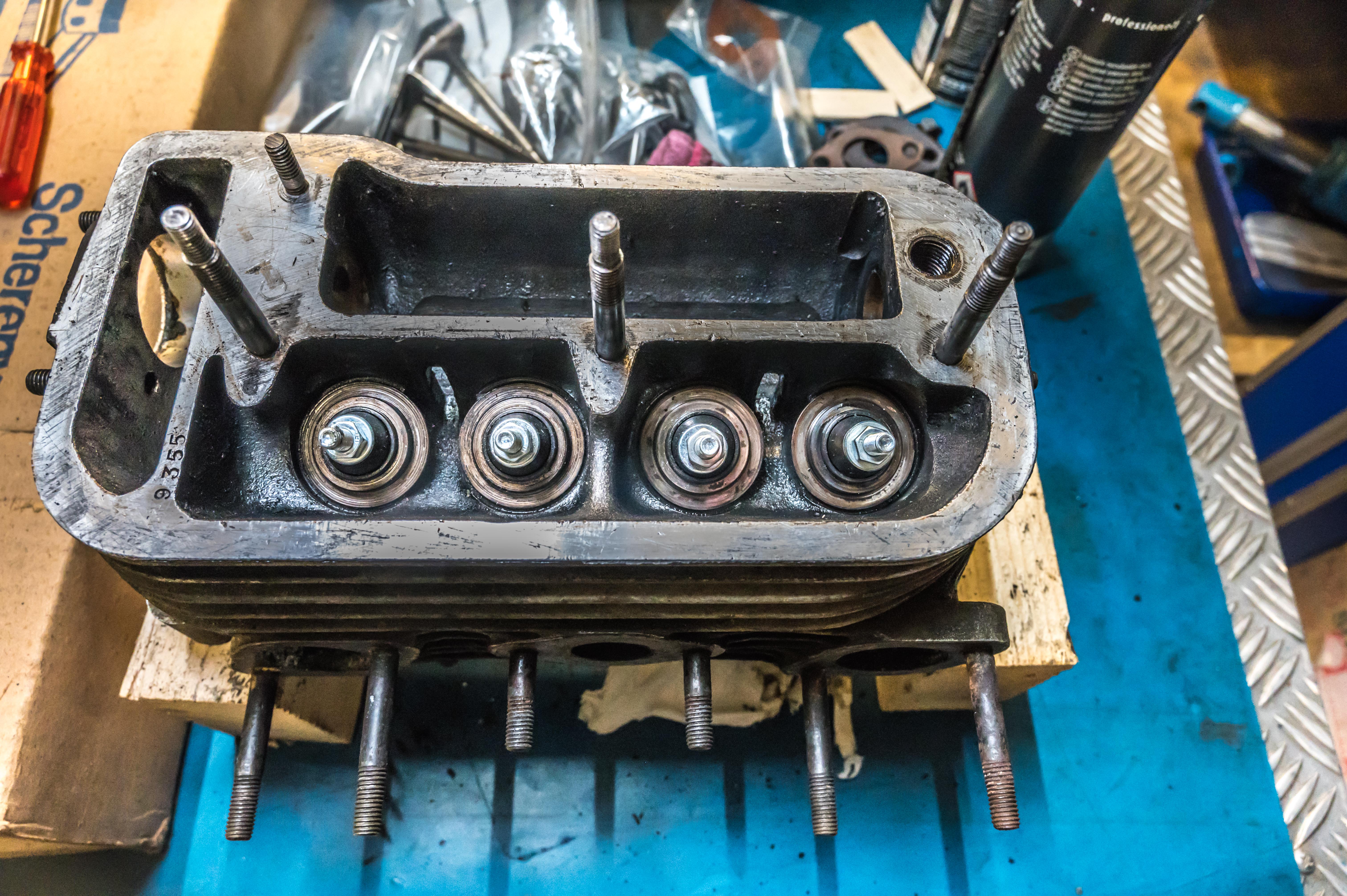 Nebst dem Entfernen von Ölkohle und Co. bereite ich die Ventilsitze zum Glasperlen vor. Da sol kein Glas ran. Also mit Schrauben, Unterlagsscheiben und Co alles sauber „verpacken“.