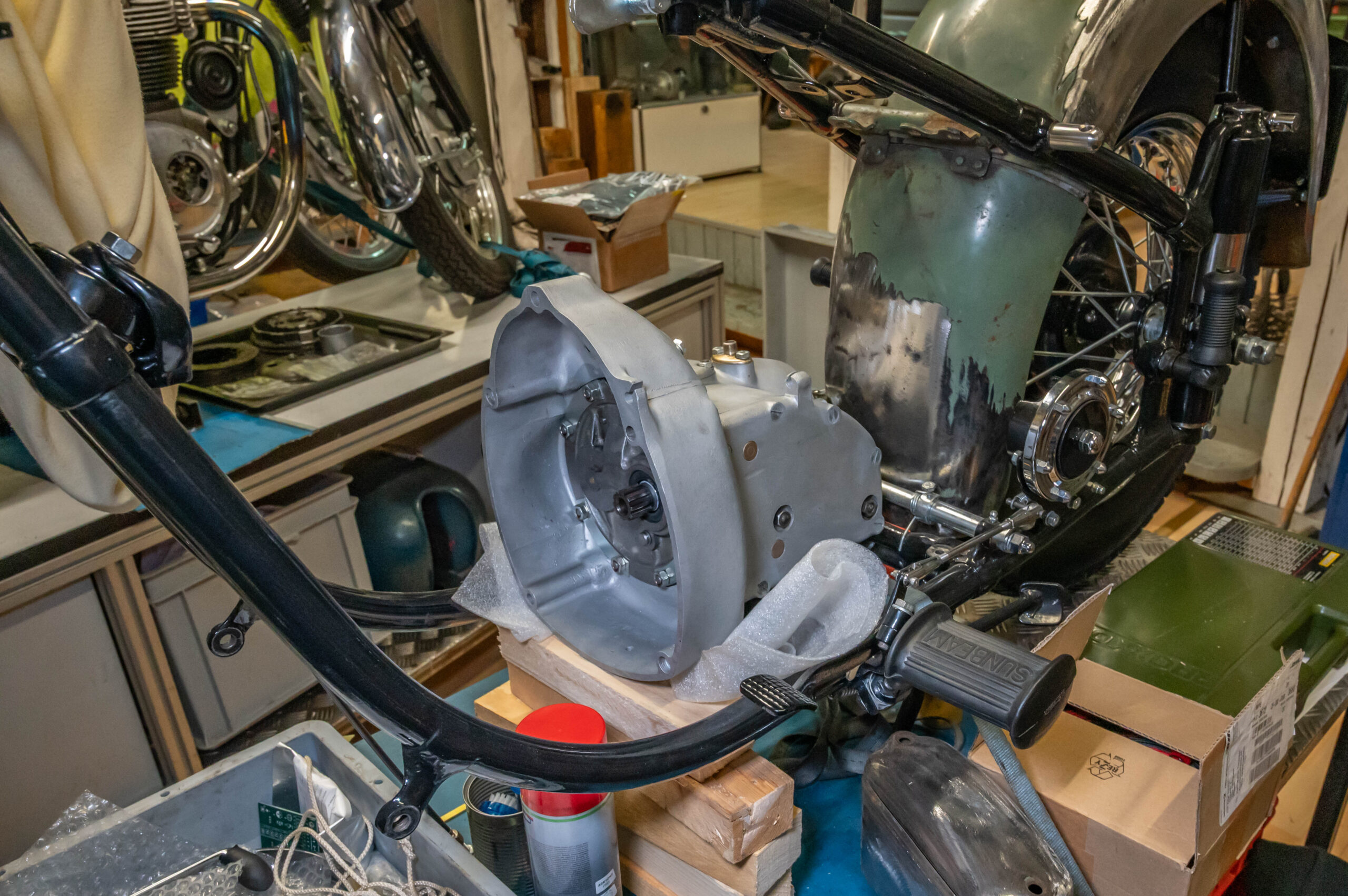 Rasch noch in den rahmen hängen. Dann ist das Getriebe aus dem Weg…