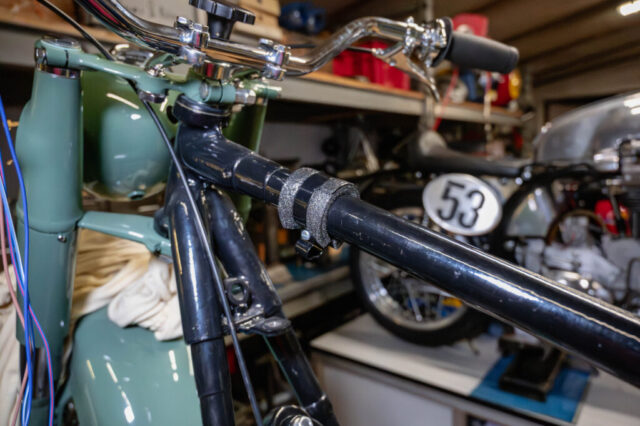 Die beiden Kasten (Elektronik, Batterie) sind ganz schön fummelig zu montieren. Die Schellen für den Kabelbaum unter dem Tank gehen da schon einfacher. Anstelle des originalen Filz und Kork versuche ich es mit Etafoam. Superzäh das Zeug. Muss noch testen, ob das auch Öl und Benzin widerstehen kann…