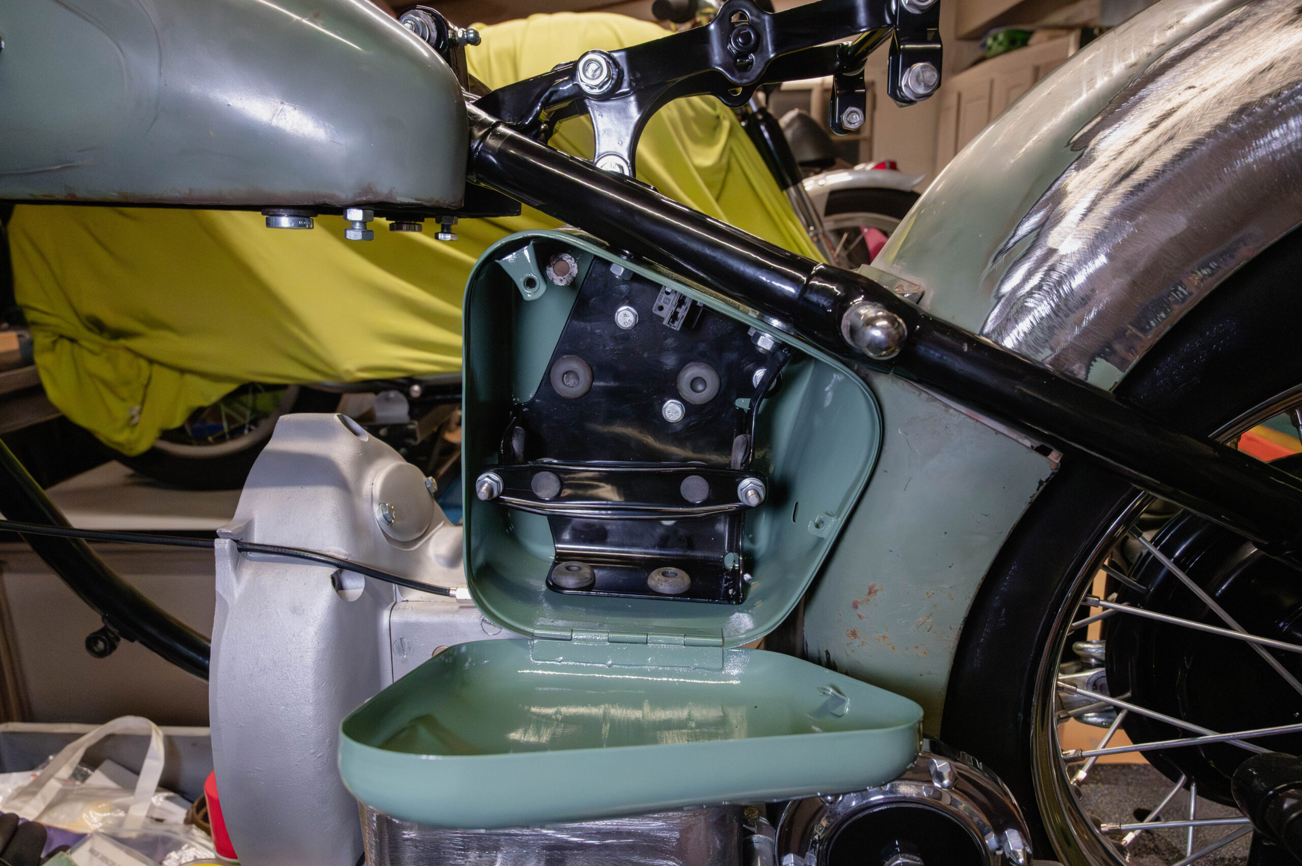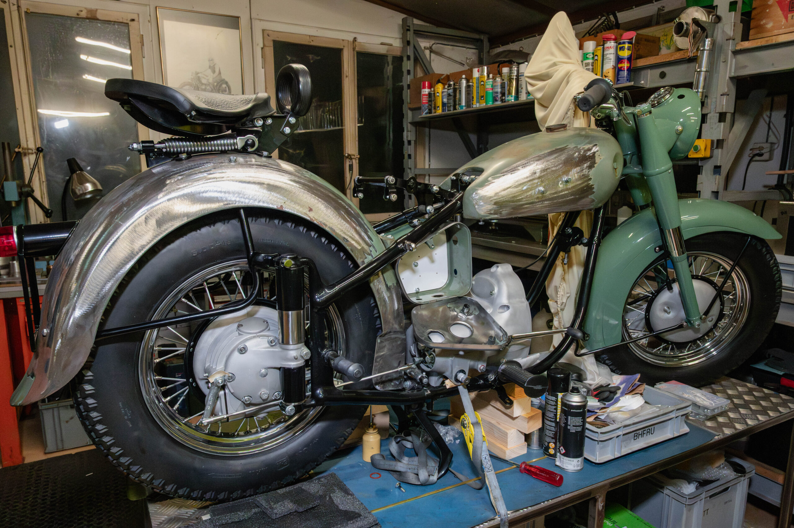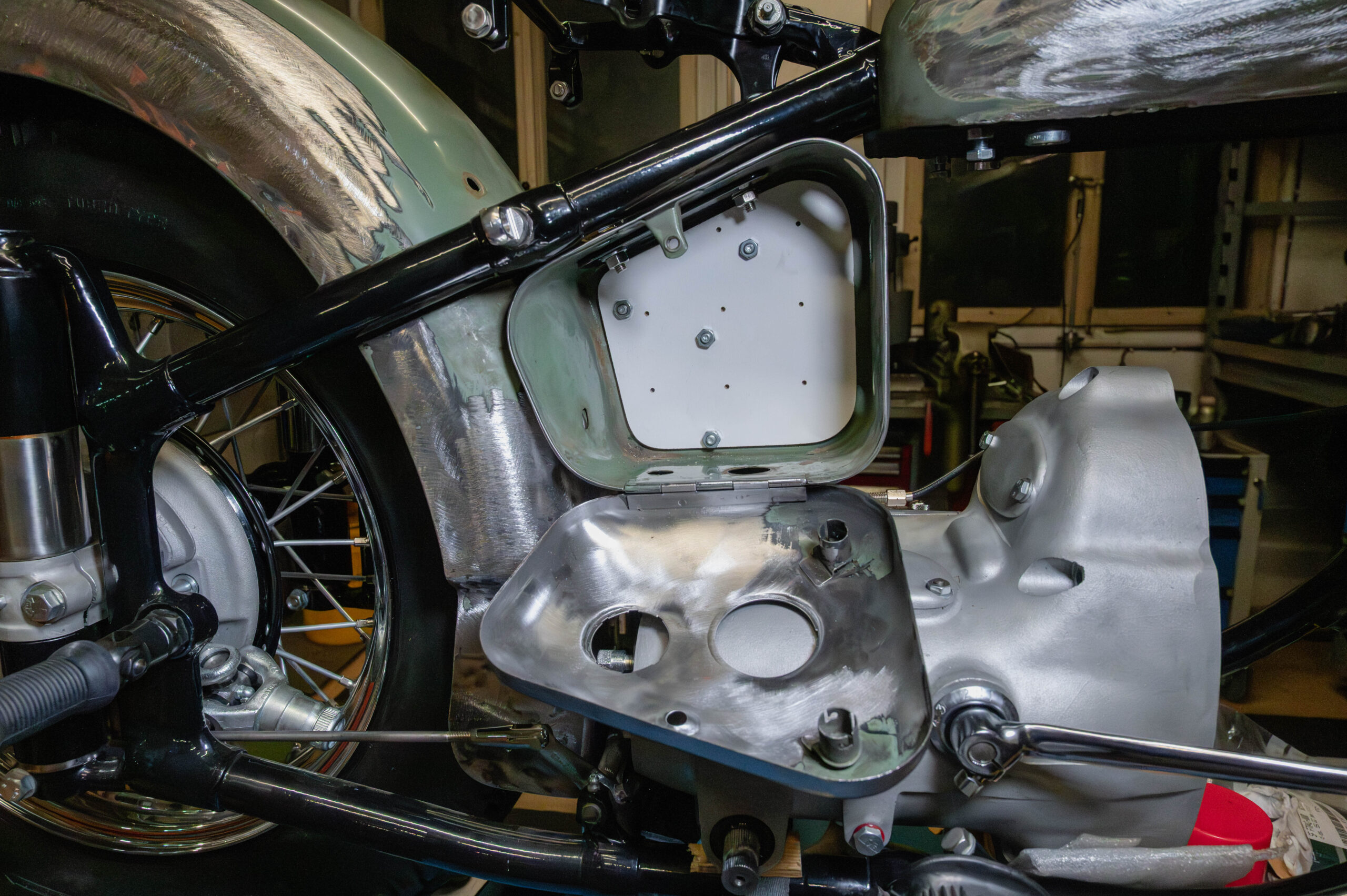 Ich will einen zentralen Massepunkt an meinem Motorrad haben. Im Elektronikkasten komt daher eine fette Alplatte rein. Als Prototypen nehme ich eine 5mm-Pavatex-Platte (nach einem Muster aus Karton). Da kommen un die Löcher rein. Hoffentlich kann ich damit alles befestigen.