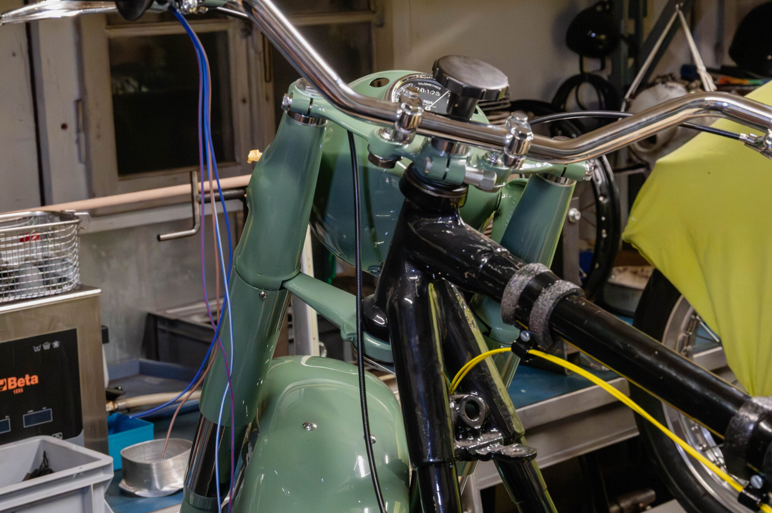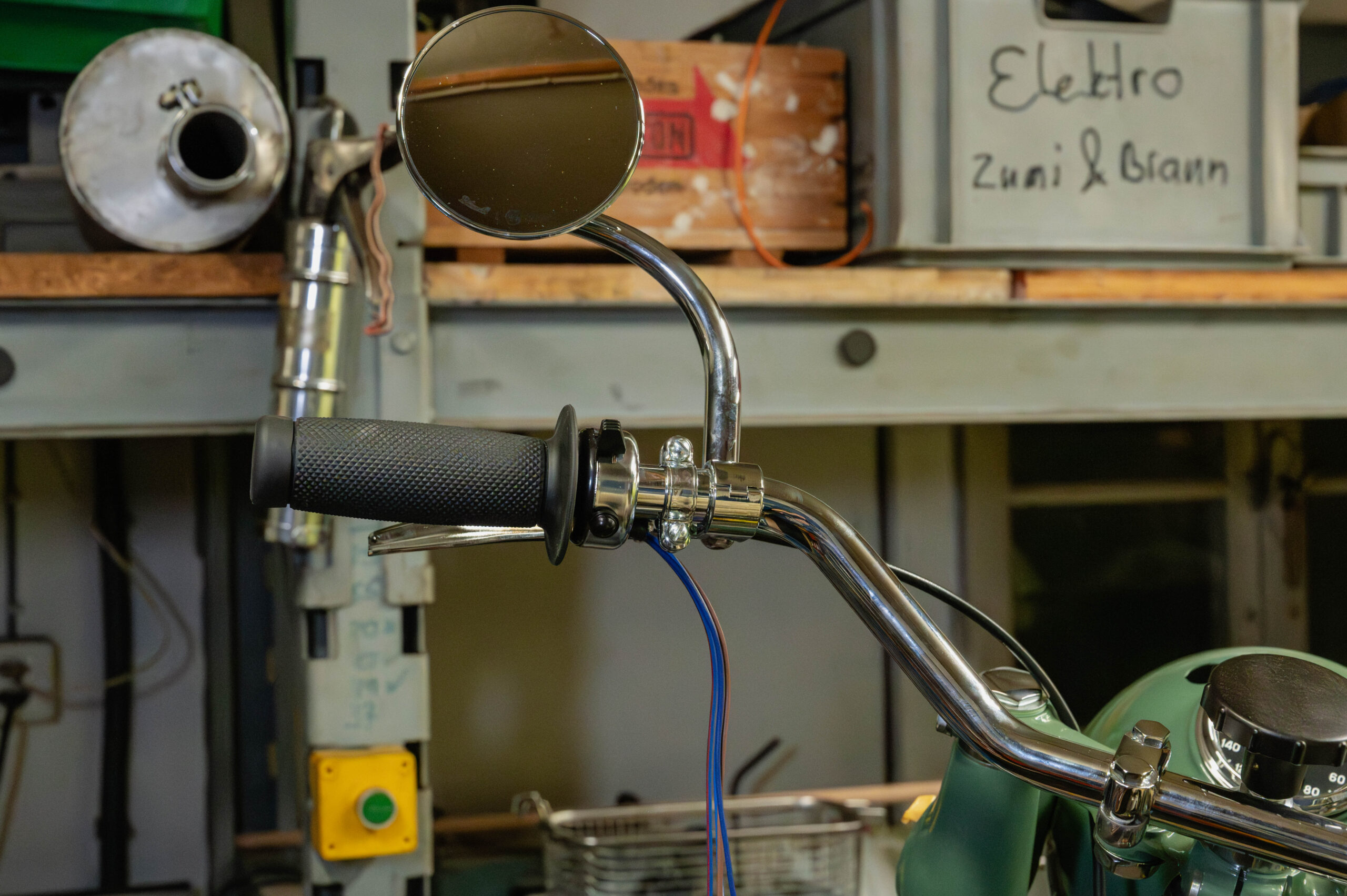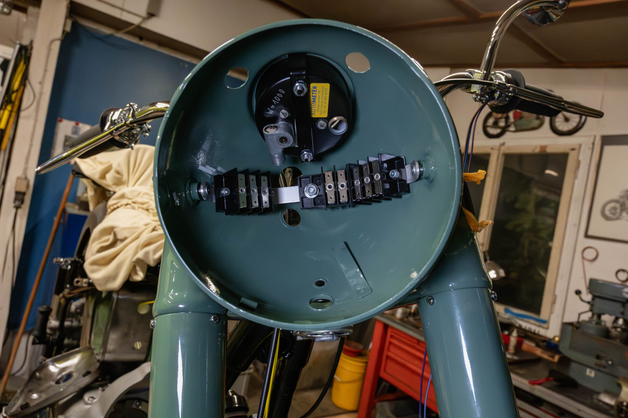 Ich bin immer noch an der Frontpartie. Die Gestaltung rund um den Kombischalter (Scheinwerfer und Hupe) auf der linken Seite des Lenkers ist mir noch etwas unklar.
